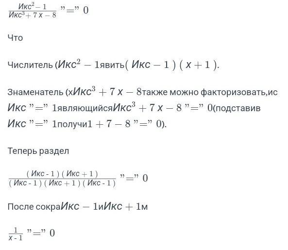 \[ \frac{x^2 - 1}{x^3 + 7x - 8} = 0 \]