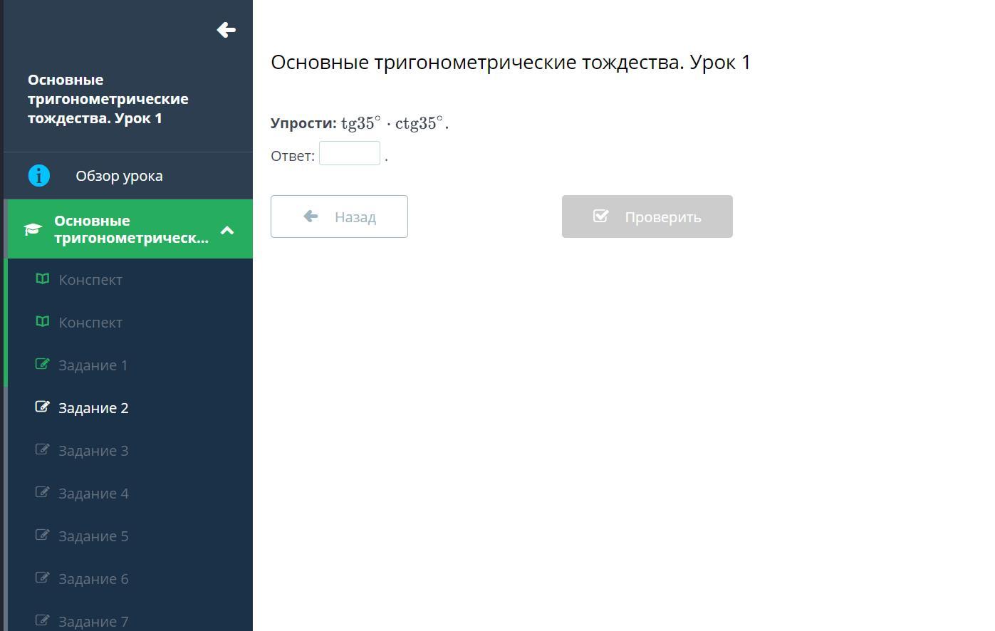 таким образом tg35 *ctg35 = tg35*1/tg35 = 1