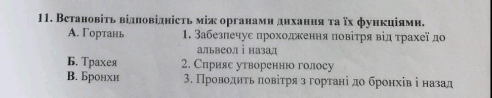 11. Встановить вiдповiднiсть між органами дихання та їх функціями.