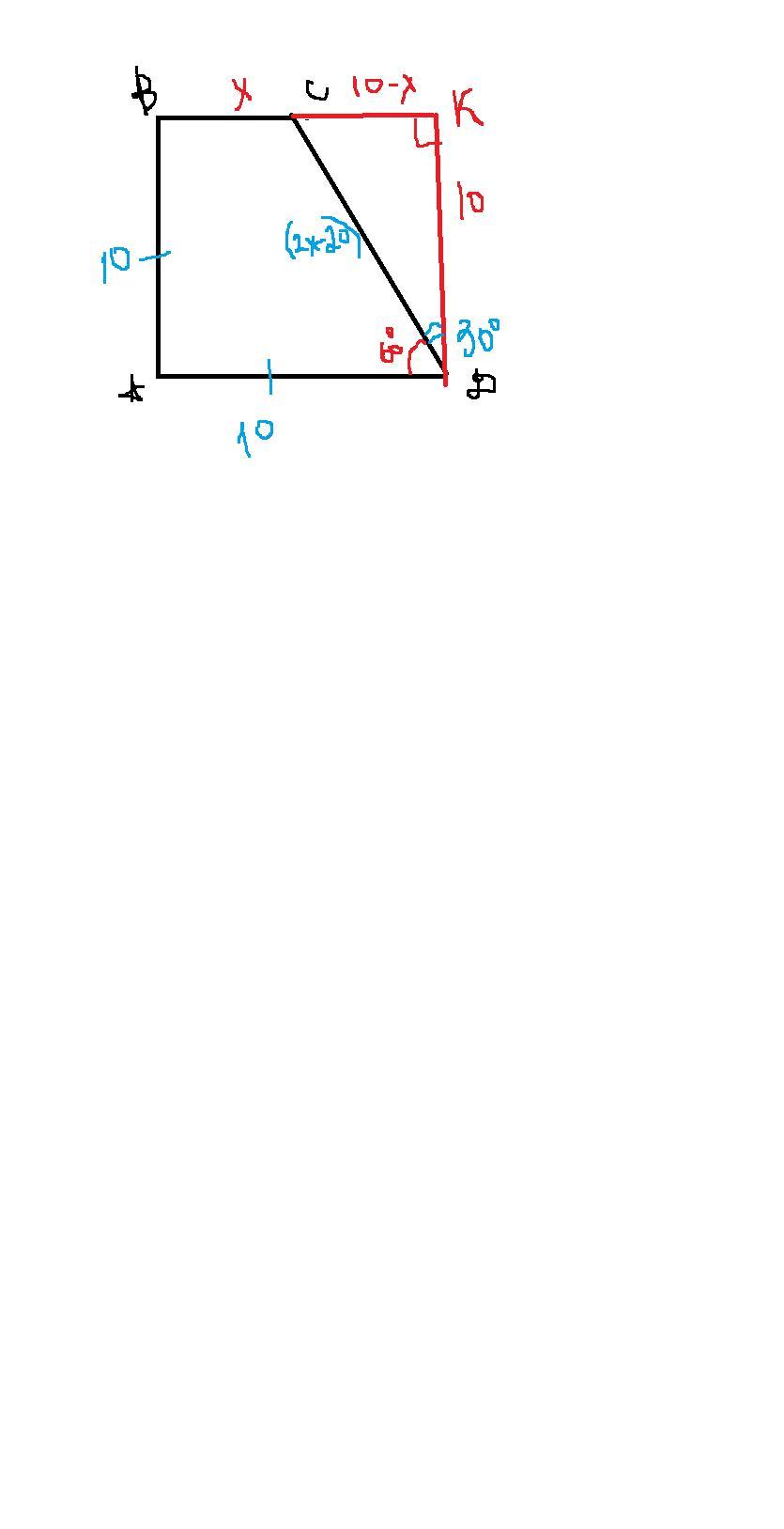 Так як ВС║АД, а АВ⊥ВС та ДК ⊥ВС, то АВКД- квадрат і АВ=ВК=КД=АД =10 см. та ∠А,∠В,∠К,∠АДК=90°
