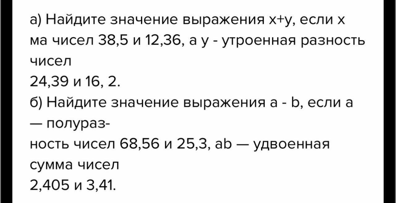 a=(68,56-25,3). b=2 •(2,405+3,41) ответ=43,26-2•5,815 =21,63-11,63=10 вот не переживай двоику не получишь.