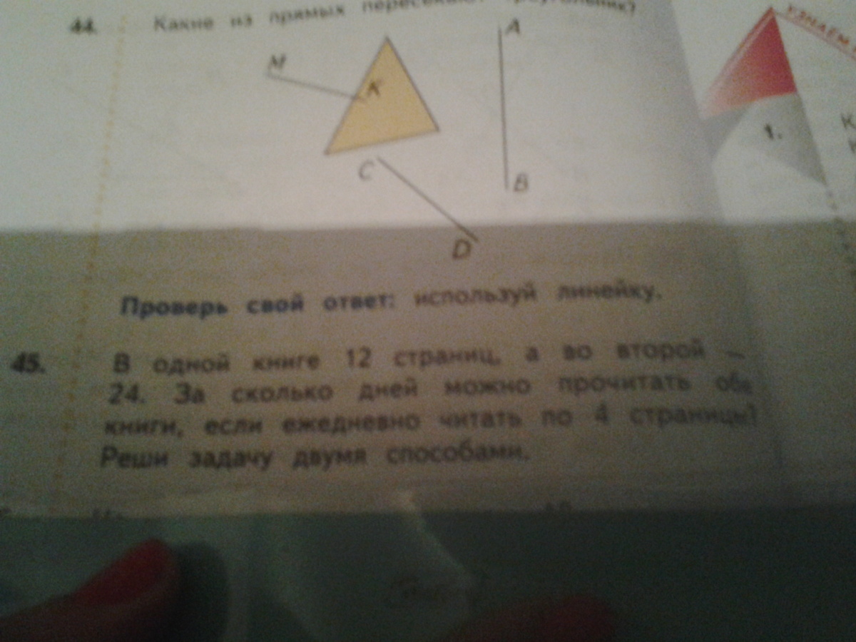 в одной 6юкниге 12 страниц а во второй 24 за сколько дней можнопрочитать обе книги если ежедневно читать по 4 страницы реши задачу двумя способами