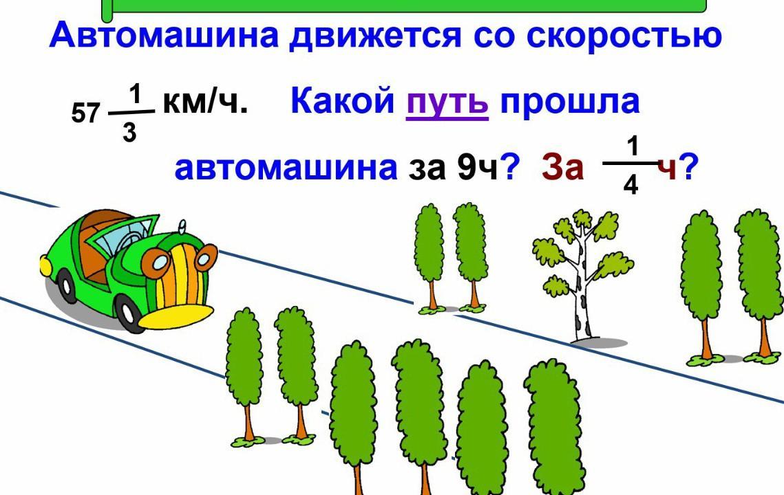 Автомашина движется со скоростью — км/ч. 3 57 1 Какой путь прошла автомашина за 9ч? За 1 ч?