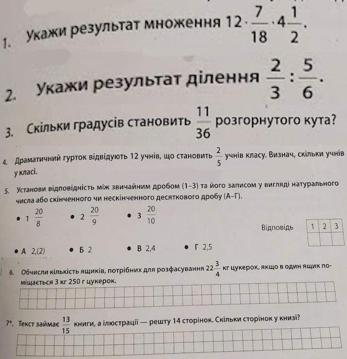 2. 2/3:5/6=2/3*6/2=4+18/6 (6 це спільний множник) = 22/6= 3 ⁴/⁶