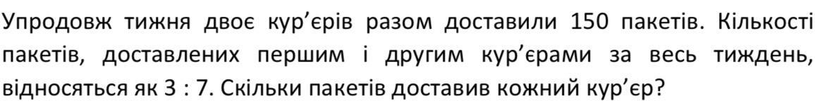 7 * 15 = 105 пакетів доставив другий кур'єр