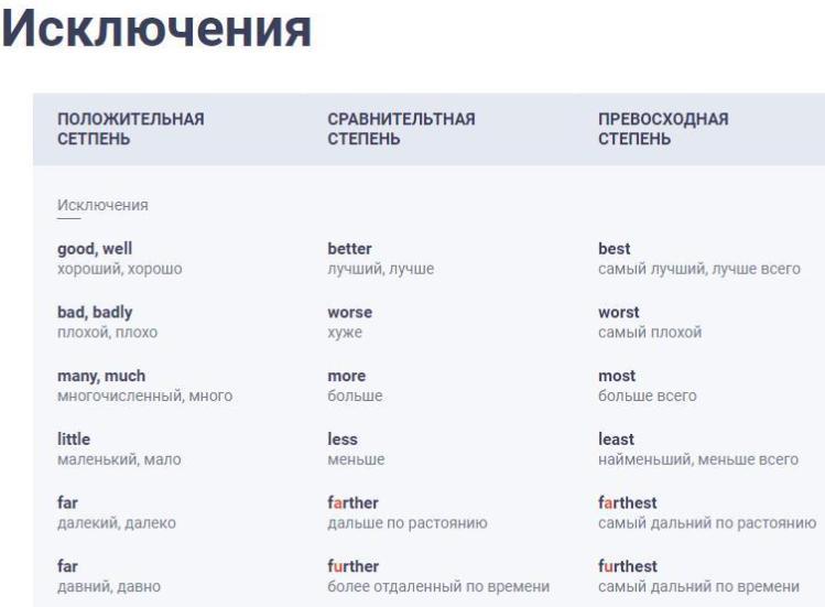 **Далее правила в таблицах