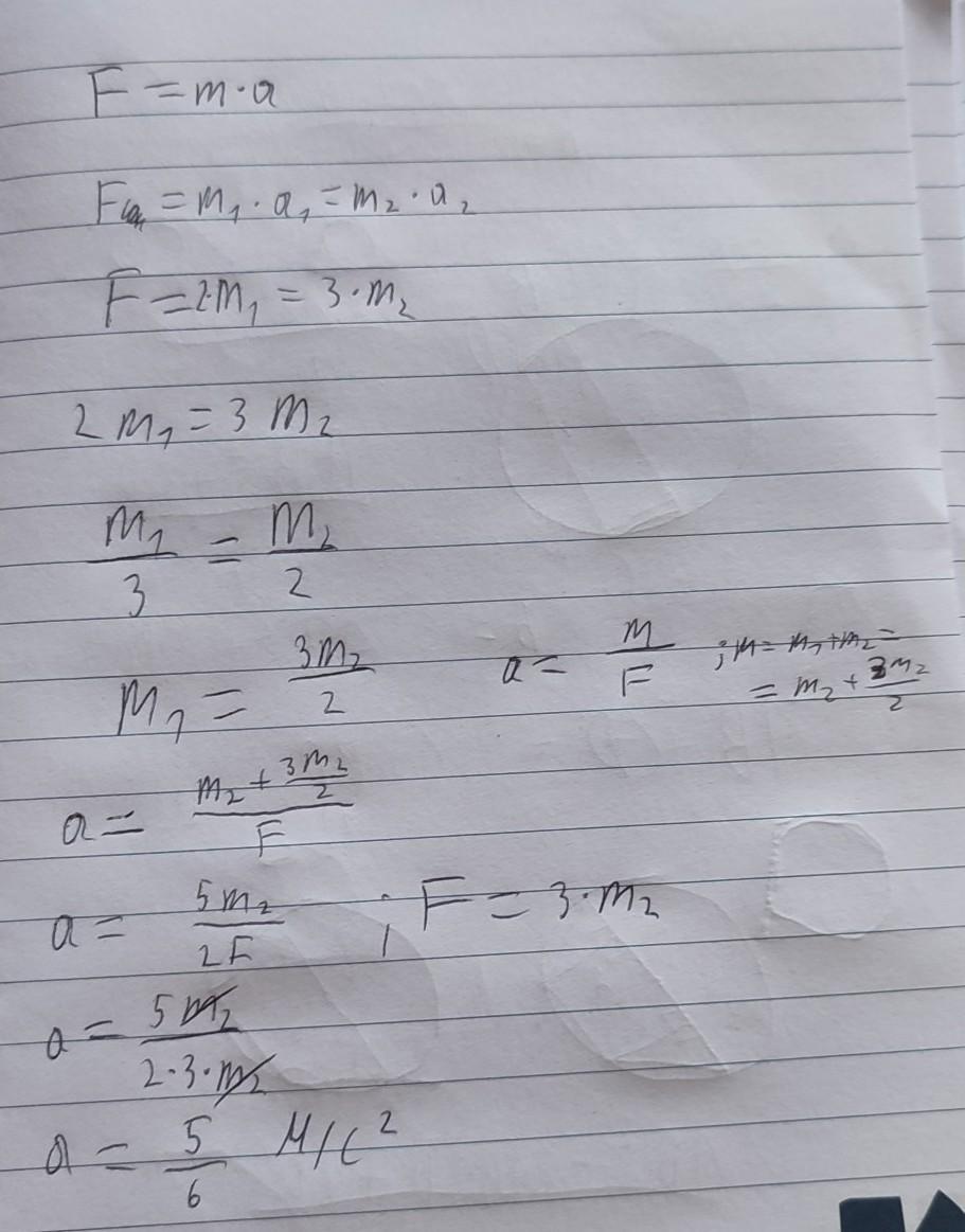 Під дією деякої сили одне тіло рухається з прискоренням 2,0 м/с 2 , а інше — 3,0 м/с 2 . З яким прискоренням рухатимуться тіла під дією цієї сили, якщо їх з*єднати?
