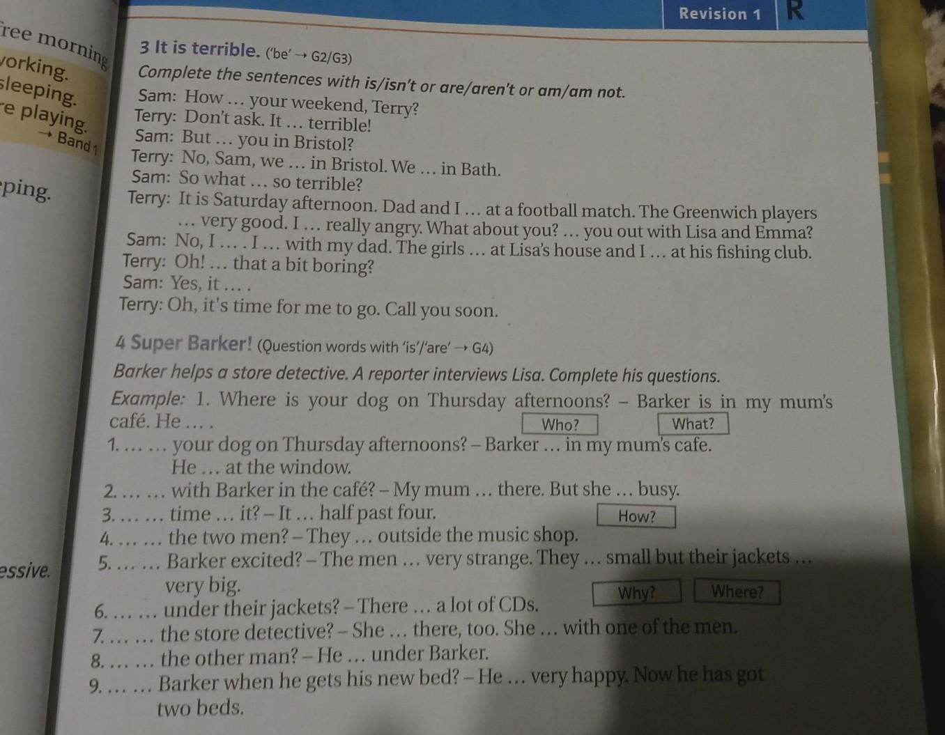 2. What... with Barker in the café? - My mum is there. But she... is busy.