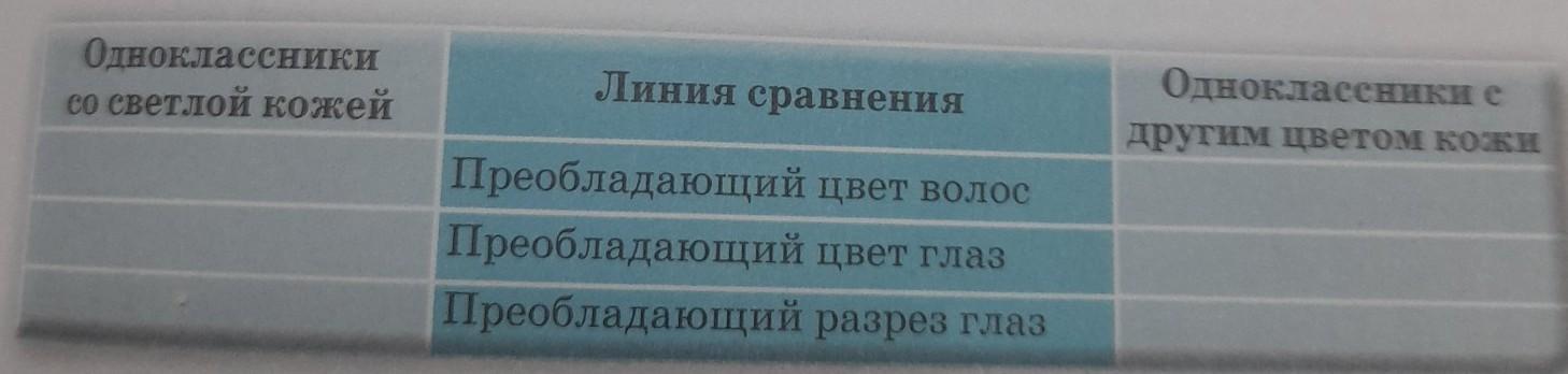 Одноклассники со светлой кожей Линия сравнения Преобладающий цвет волос цвет глаз Преобладающий Преобладающий разрез глаз Одноклассники с ДРУГИМ Цветом кожи