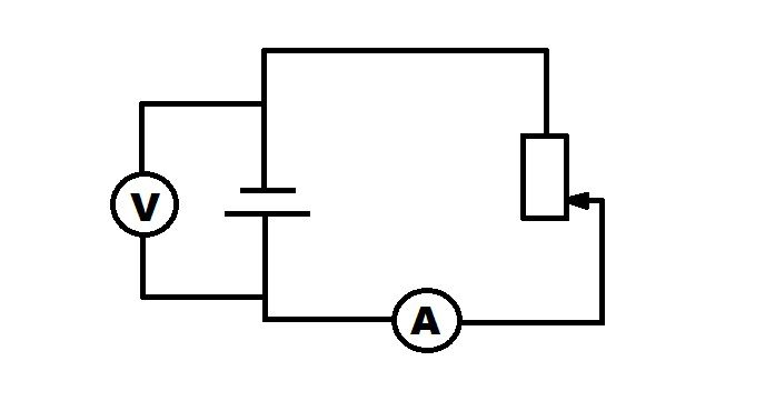 В цепи, изображенной на рисунке, ползунок реостата перемещают вниз. Как изменились показания амперметра и вольтметра?