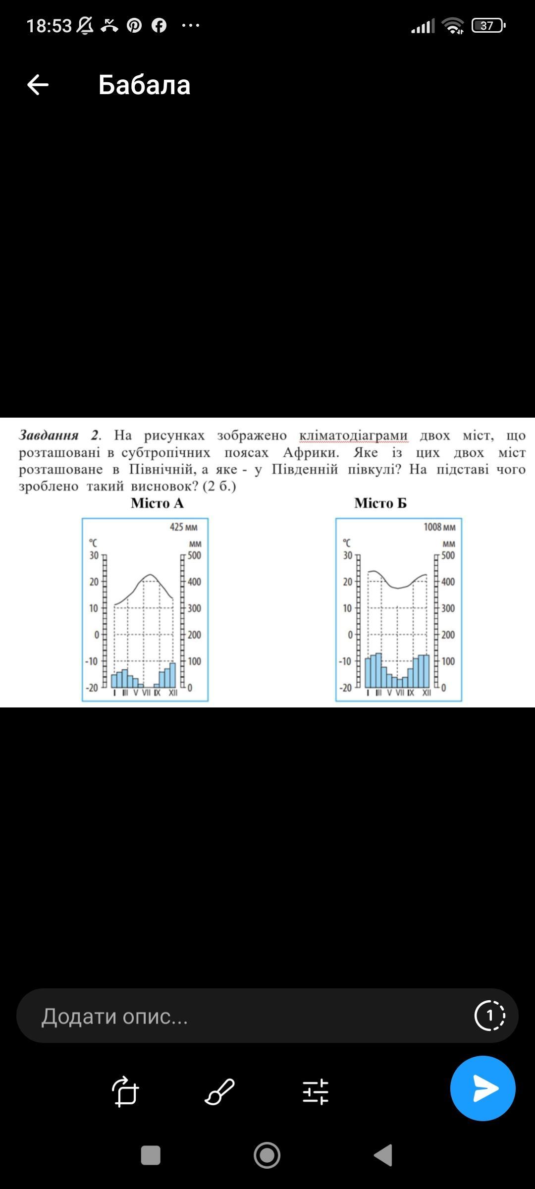 На рисунках зображено клiматодіаграми двох міст, що розташовані в субтропічних поясах Африки. Яке із цих двох міст розташоване в Північній, а яке- у Південній півкулі? На підставі чого зроблено такий висновок?