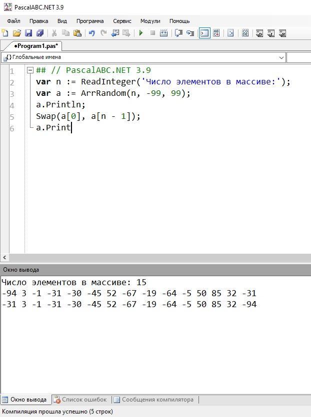 Переставьте первый элемент массива на последнее место.Вывести на экран исходный и преобразованный массив .