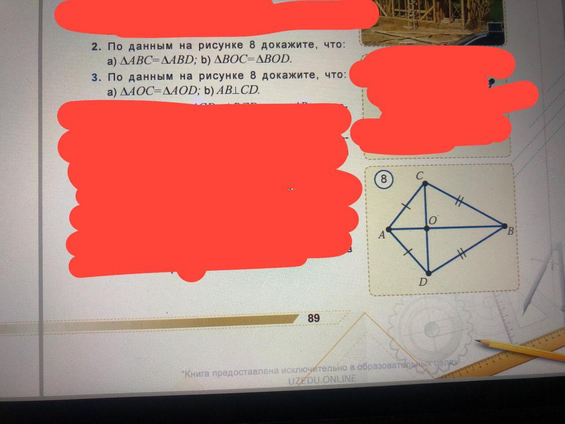 рассмотрим треугольник АСД так как он равнобедренный потому что две стороны равны то по свойству равно бренного треугольника отрезок проведенный к основанию будет являться высотой ,ао это часть об получается АБ перпендикуляр