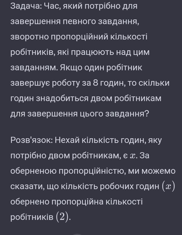 Складіть и розв'яжіть задачу, на обернену пропорційність