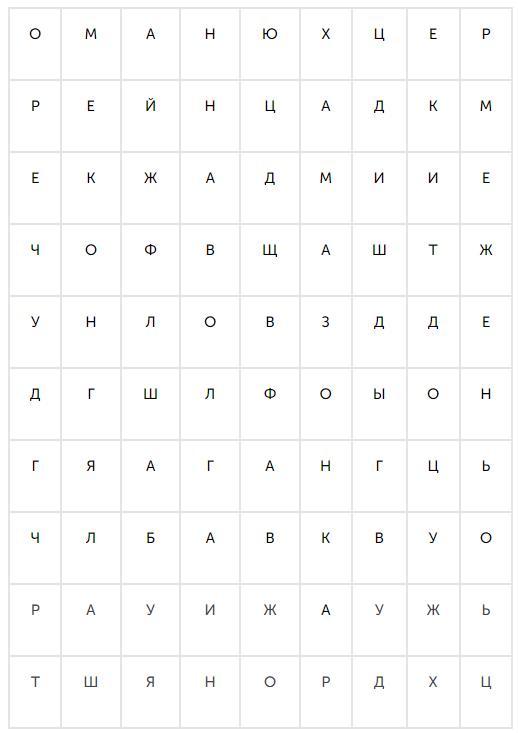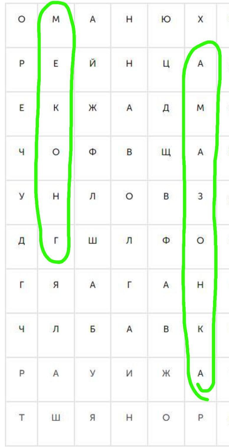 В таблице зашифрованы названия крупнейших судоходных рек мира. Найдите 5 этих названий.