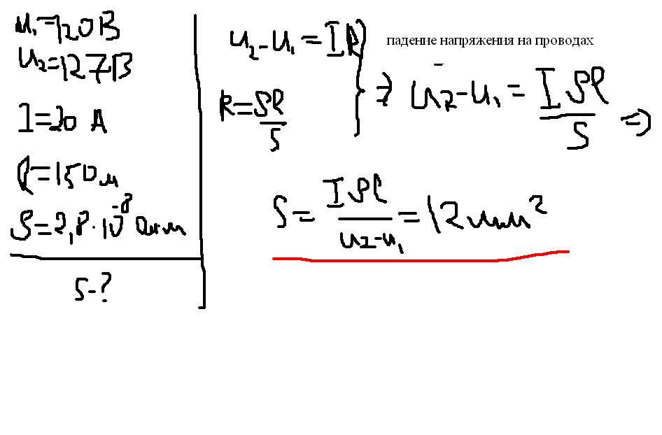 20 А , удалён на 150 м от источника с апряжением 127 В. Какого сечения потребуются
