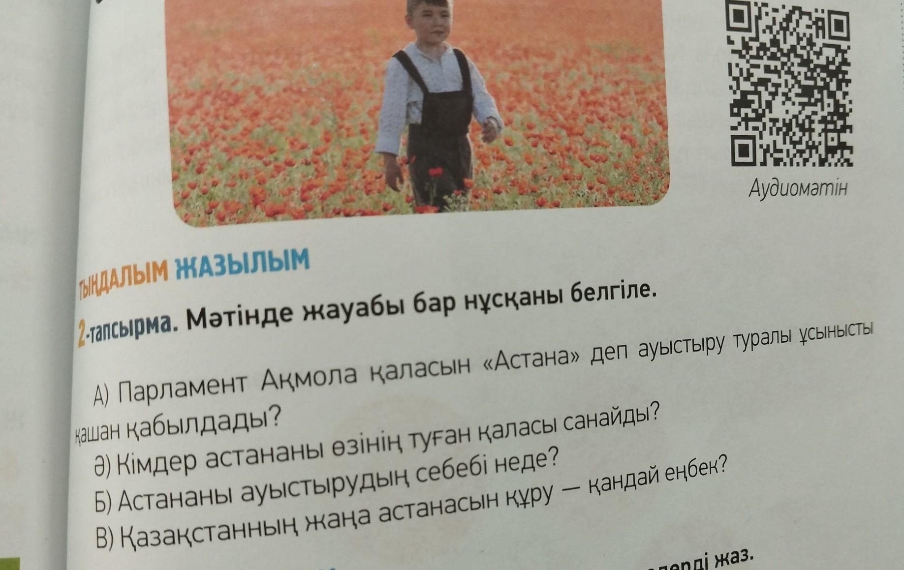 ТЫНДАЛЫ 2-тапсырма. Мәтінде жауабы бар нұсқаны белгіле.