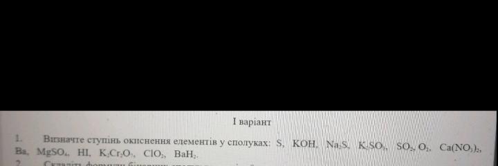 Ba⁰ ; Mg⁺²S⁺⁶O₄⁻² H⁺I⁻; K₂⁺Cr₂⁺⁶O₇⁻² ; Cl⁺³O₂⁻² ; Ba⁺²H₂⁻