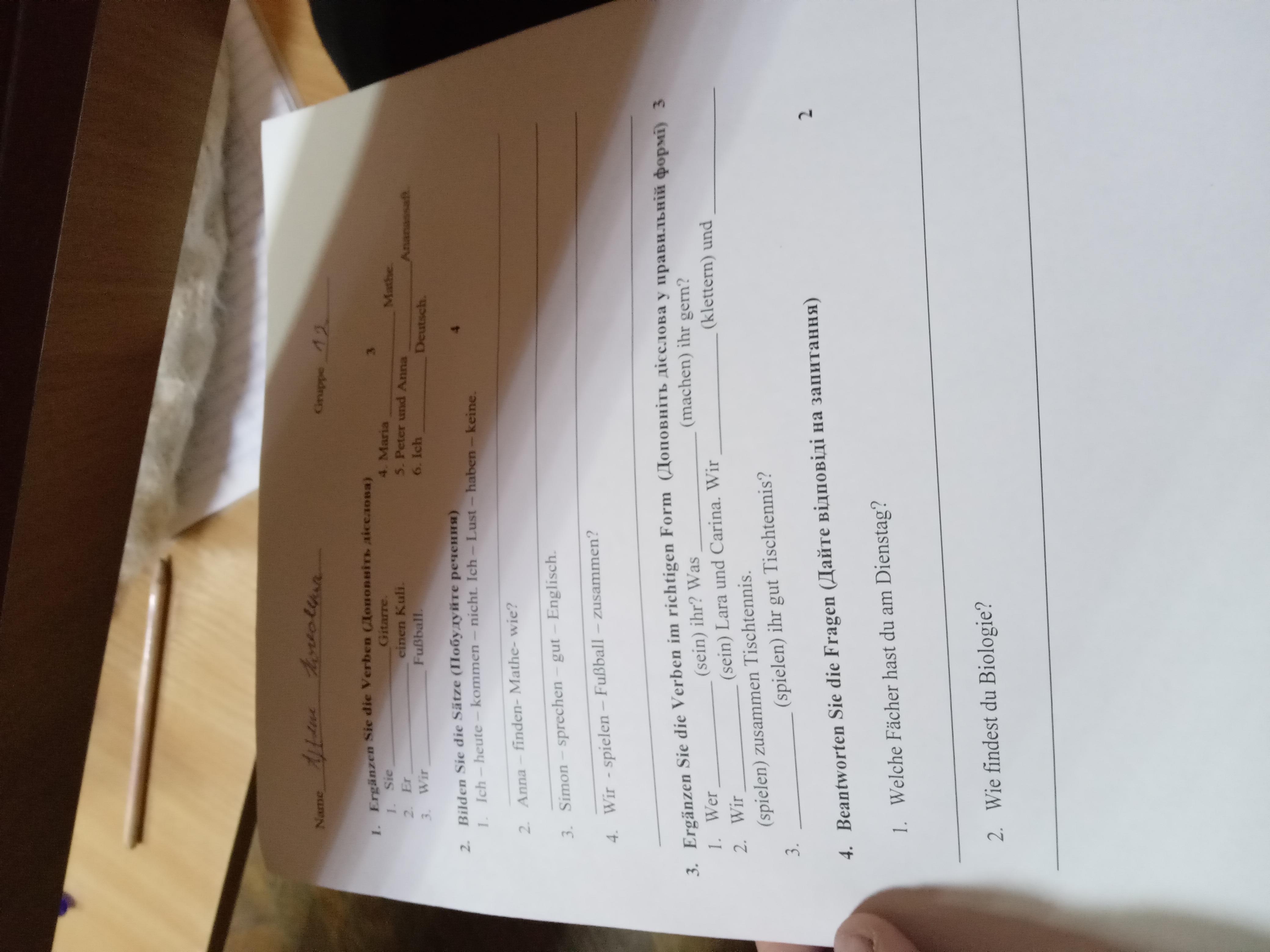 Во втором нужно написать как ты находишь биологию, ты можешь ответить: ich finde Biologie interessant und toll (я нахожу биологию интересной и классной) или ich finde Biologie langweilig und schlecht (я нахожу биологию скучной и плохой)