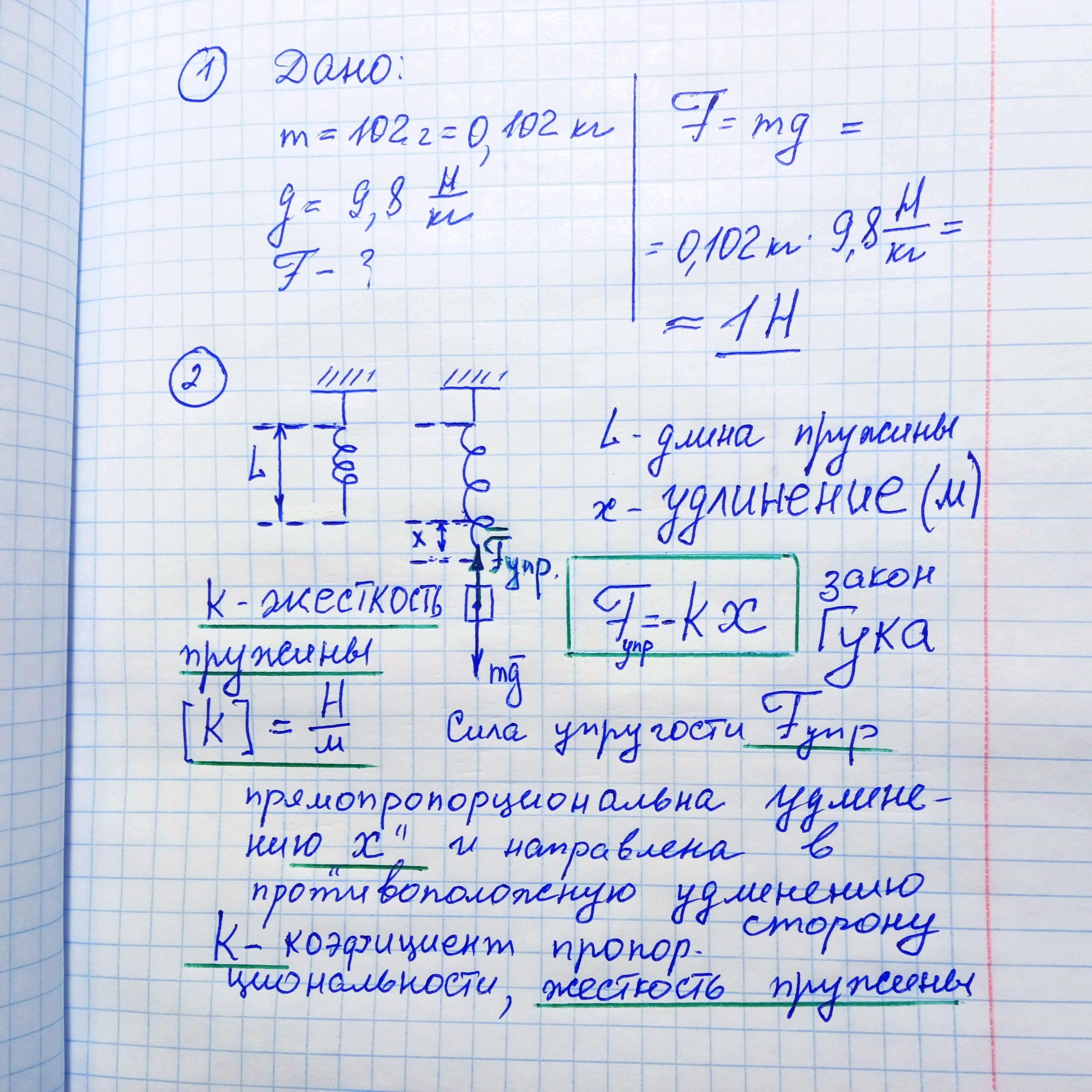 1) чему равен вес груза массой 102г?