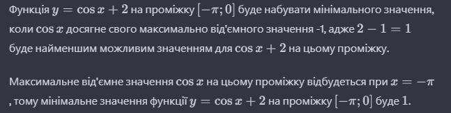 Якого мінімального значення набуває функція у=cos x+2 на проміжку [-π;0]? Будь ласка допоможіть