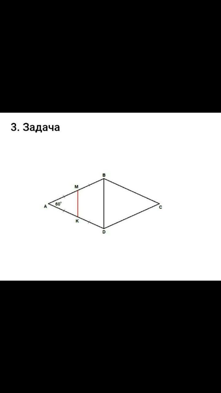МК = 1/2 BD = 1/2 · 6 = 3 см по свойству средней линии треугольника.