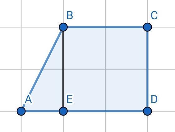3) BCDE - прямокутник, оскільки три його кути прямі -> протилежні сторони рівні: ВС=ED=3см