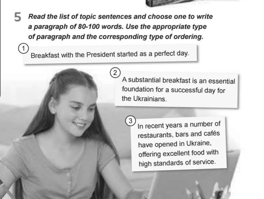 5 Read the list of topic sentences and choose one to write a paragraph of 80-100 words. Use the appropriate type of paragraph and the corresponding type of ordering.