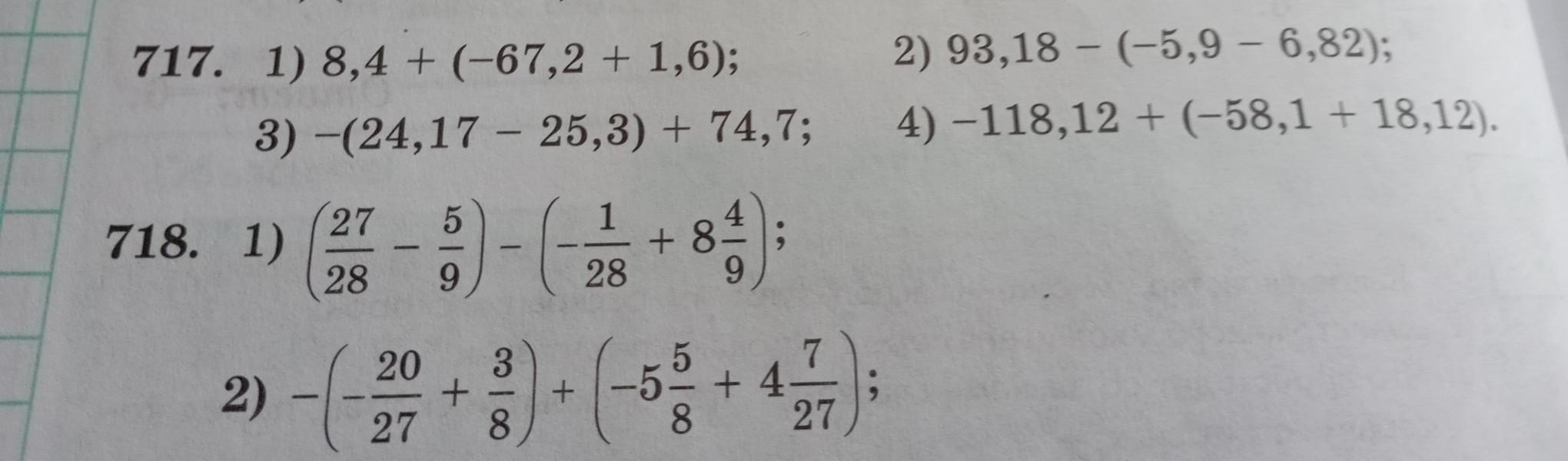1) 8,4 + (-67,2 + 1,6) = 8,4 - 67,2 + 1,6 = 10 - 67,2 = -57,2
