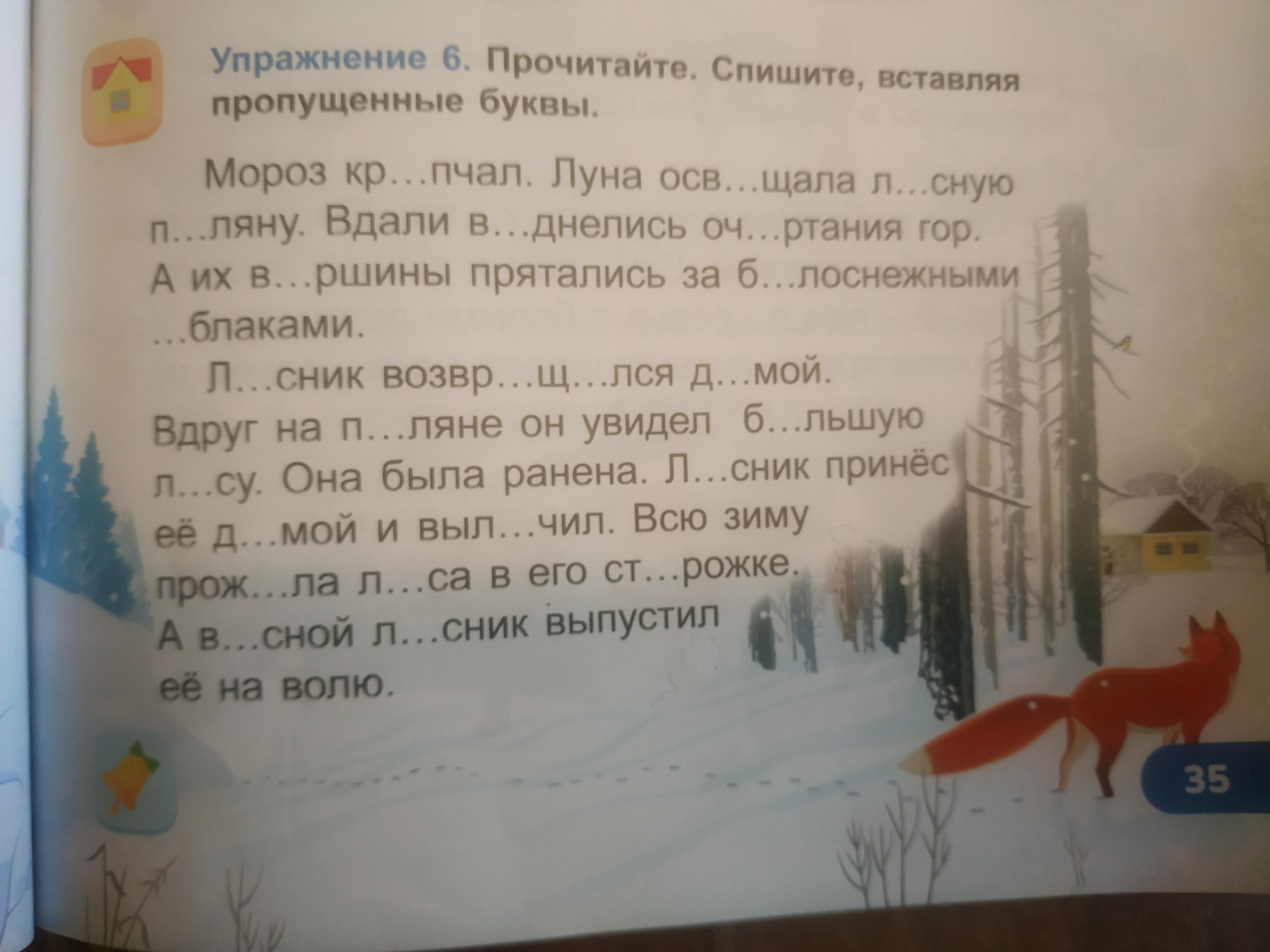 ЛЕсник возврОщался дОмой. Вдруг на пОляне он увидел бОльшую лИсу.Она была ранена.ЛЕсник принёс ее дОмой и вылЕчил.Всю зиму прожАла лЕса в его стОродке. А вЕсной лЕсник выпустил ее на волю.