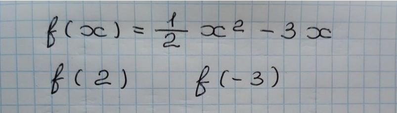 f(2)=1/2*22-322-6-4 - ответ f(-3) = 1/2* (-3)² - 3*(-3) = 9/2 + 9 = 13.5 - ответ
