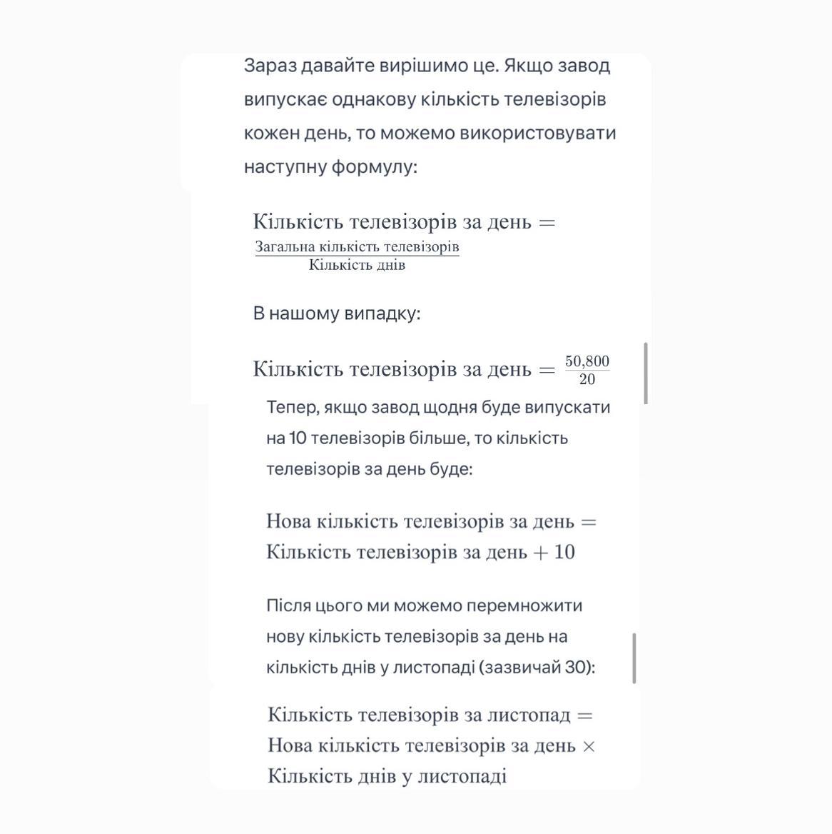 ДОМАШ 9 Реши задачу. Выпуская в день одинаковое количество те левизоров, завод изготовил за 20 дней 50 800 телевизоров. Сколько телевизоров выпу стит завод за ноябрь месяц, если он ежеднев но будет выпускать на 10 телевизоров больше?