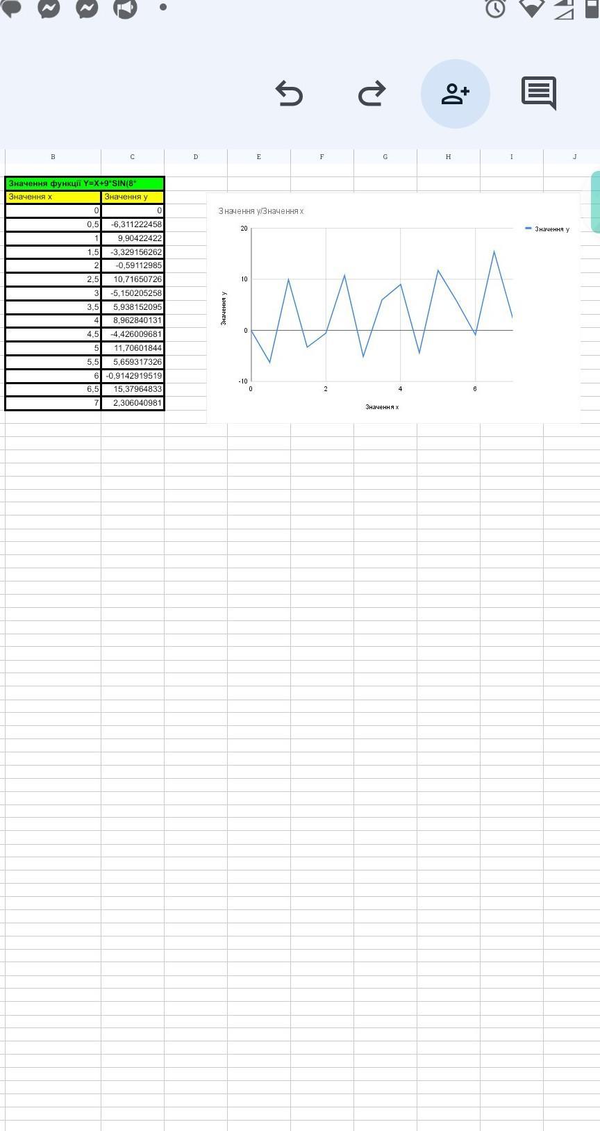 Побудувати таблицю значень функції y = х + 9*sin(8*x) на відрізку [–3;3]
