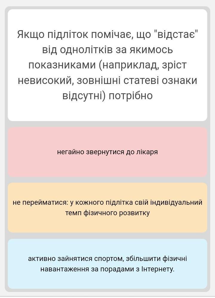 Відповідь:негайно звернутимя до лікаря