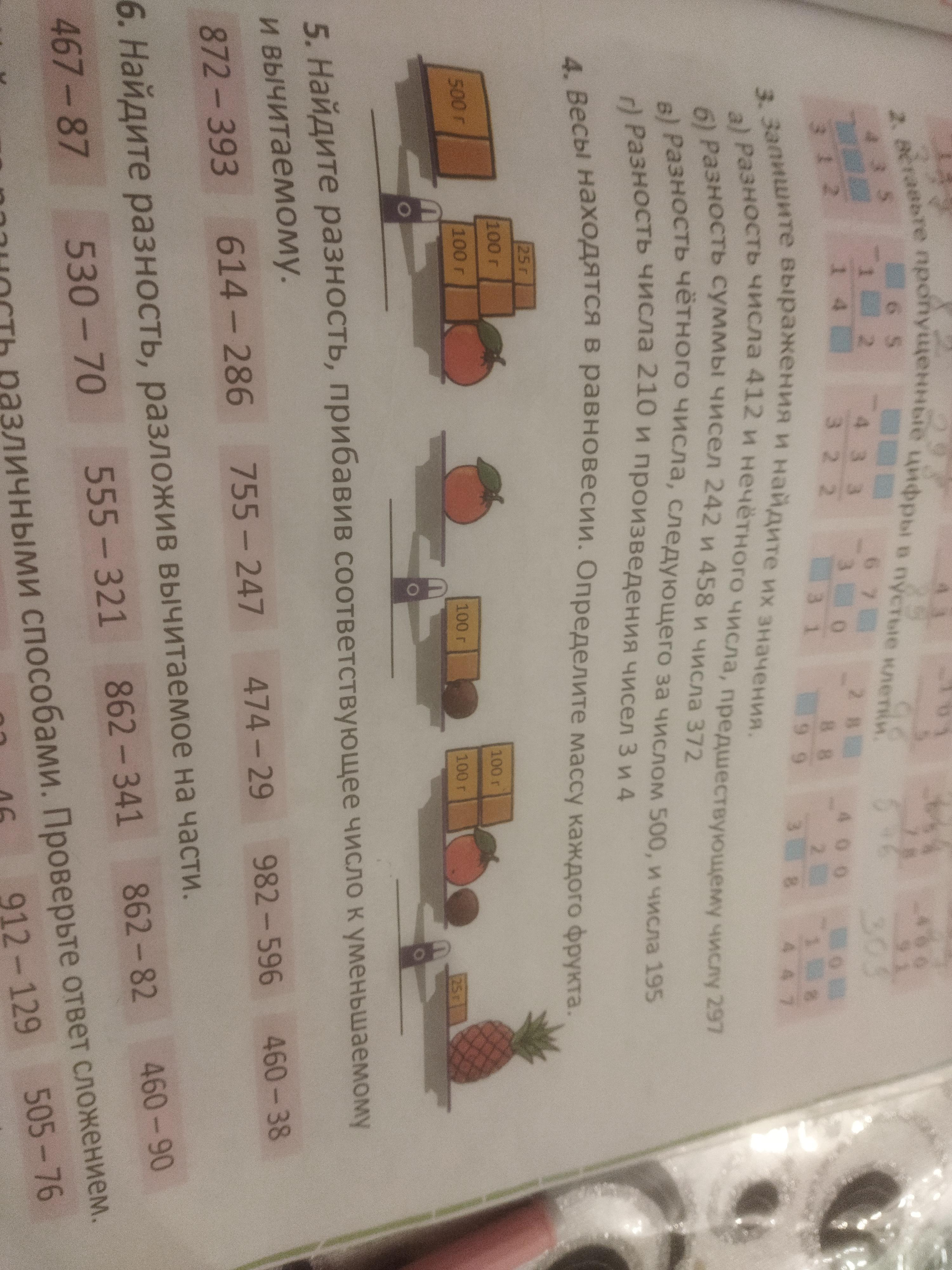 3 рисунок: яблоко 250г, кокос 150г, ананас 575г