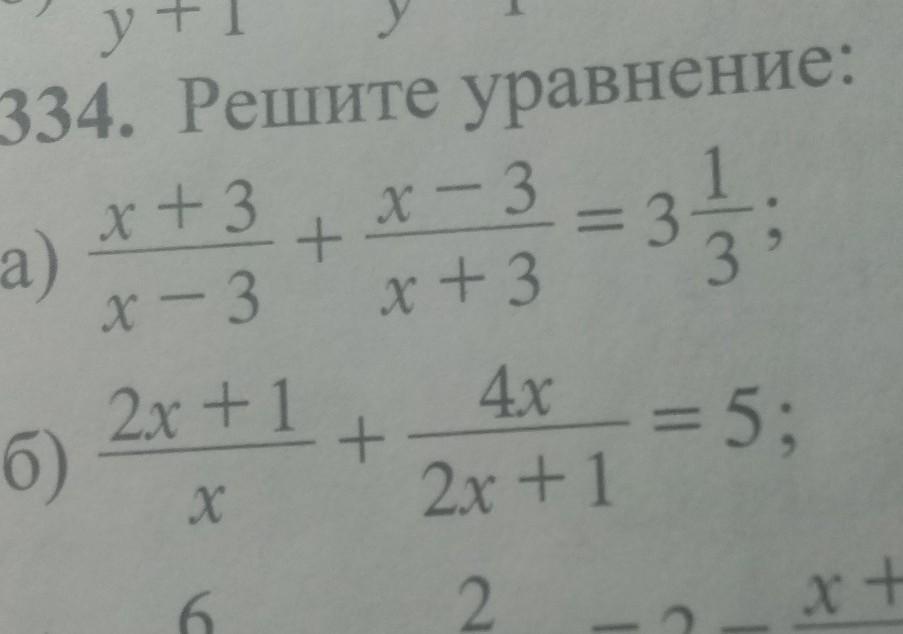 92 6) y+1 334. Решите уравнение: x x + 3 + x - 3 = 3/1/13; x - 3 x + 3 a) 6) 2x + 1 X И 6 X г) 2x-1 y-1 + + 4x 2x + 1 B) T-x27=2-x+4 В x² -1 x -1 = 5; 25 4x²-1 - P x+1' 1 27 13 1-2x