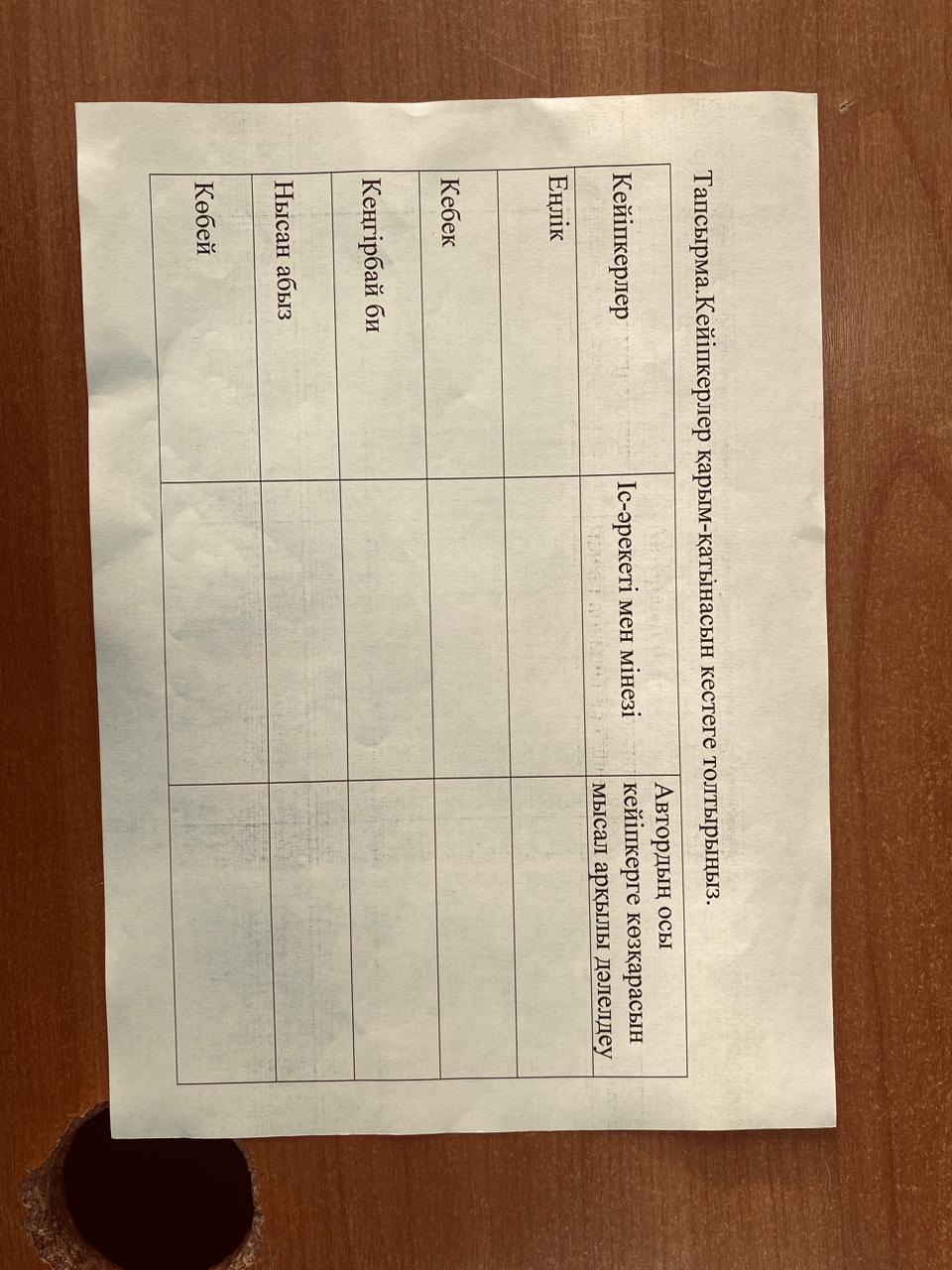 Таңшолпан – Абыздың әйелі, білімді, ел анасы болғандай ақкөңіл кемпір. 65 жаста.