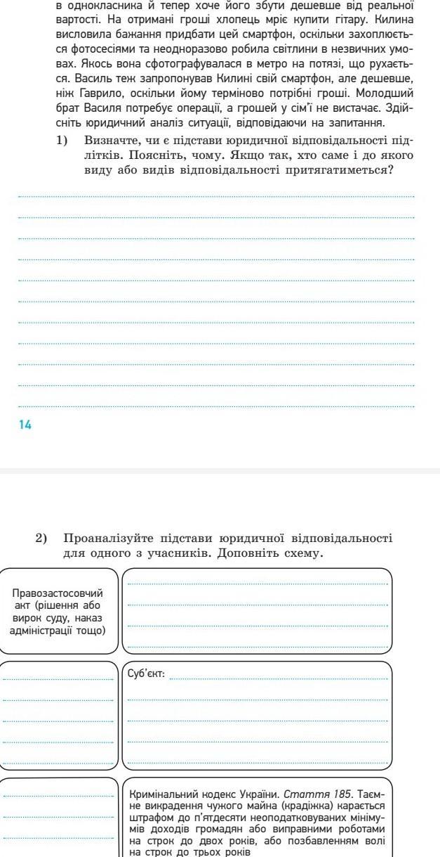 1) Визначте, чи є підстави юридичної відповідальності підлітків. Поясніть, чому. Якщо так, хто саме і до якого