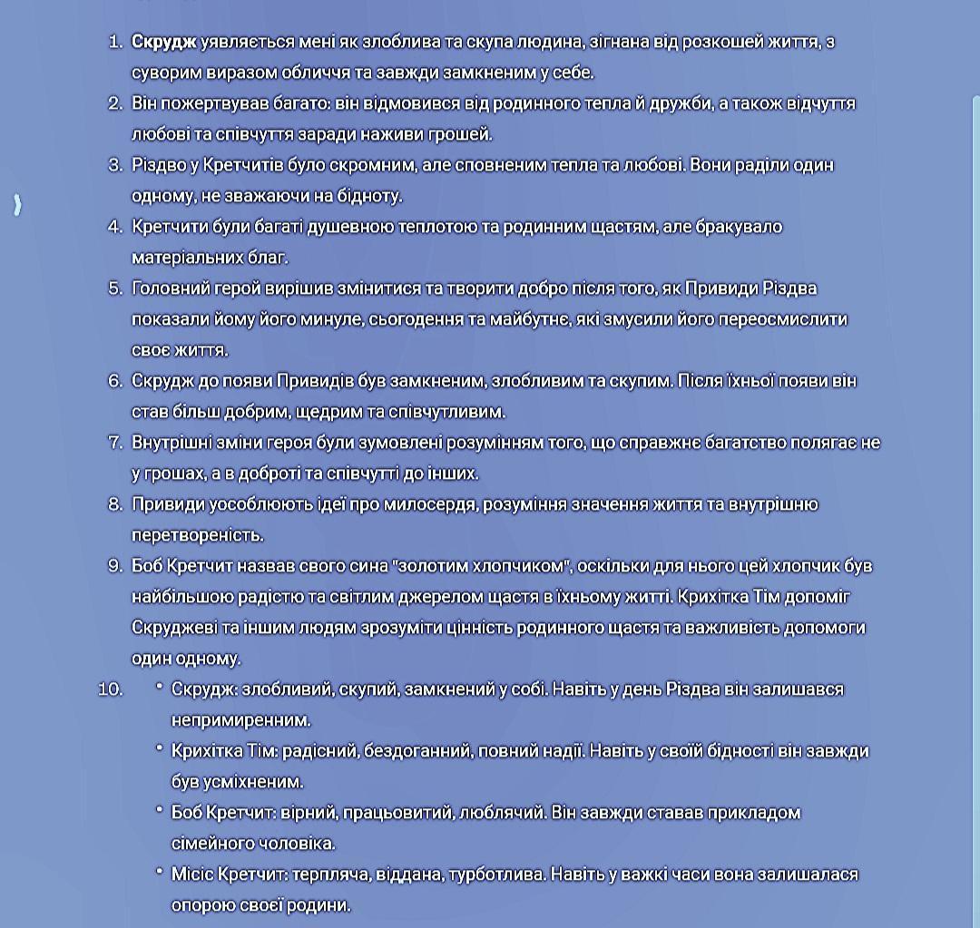11.Доберіть прикметники (3-5) для характеристики образів Скруджа, Крихітки Тіма, Боба Кретчита, місіс Кретчит. При- думайте з ними речення.