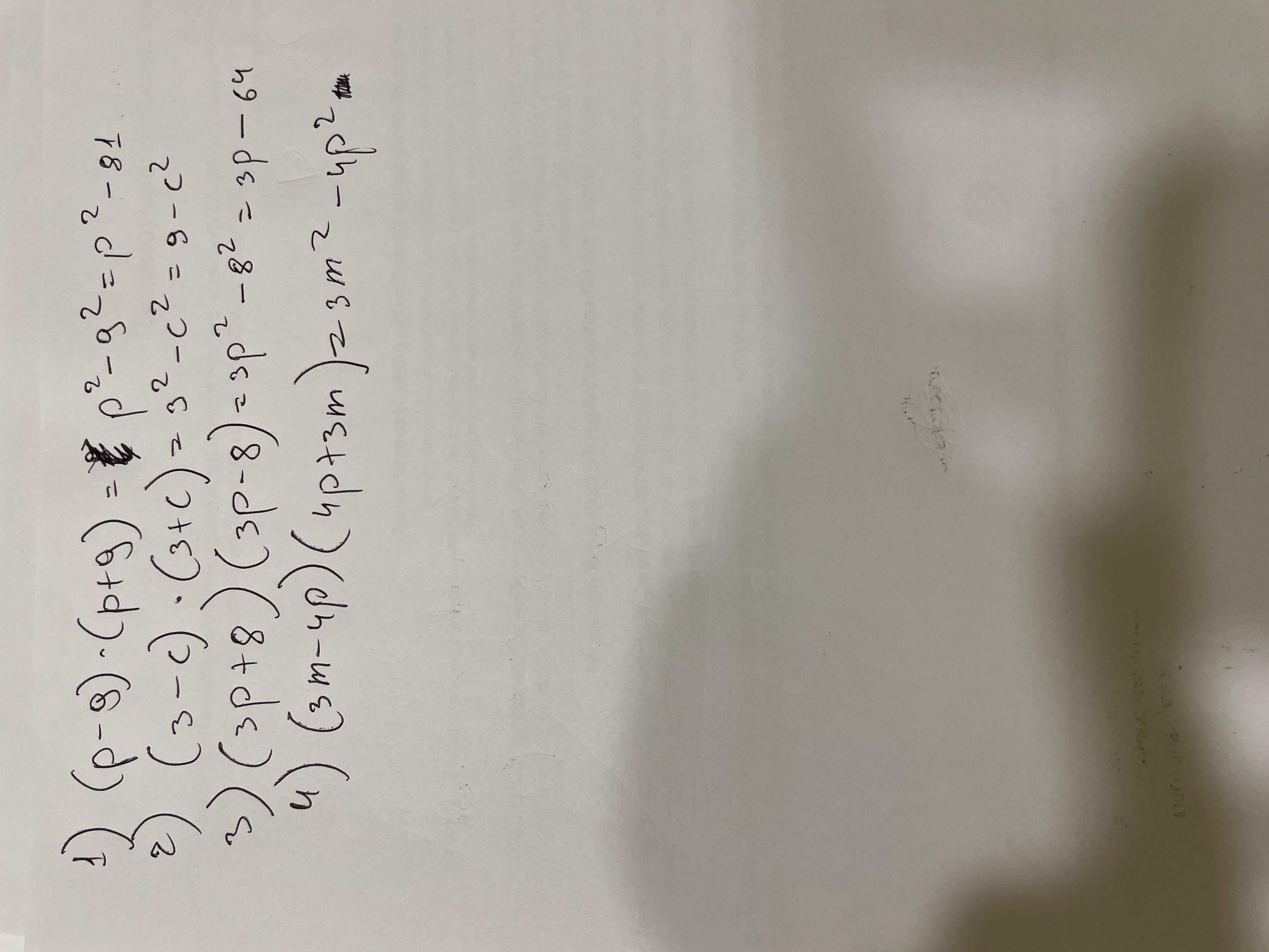 4) (3m - 4p)(4p + 3m)
