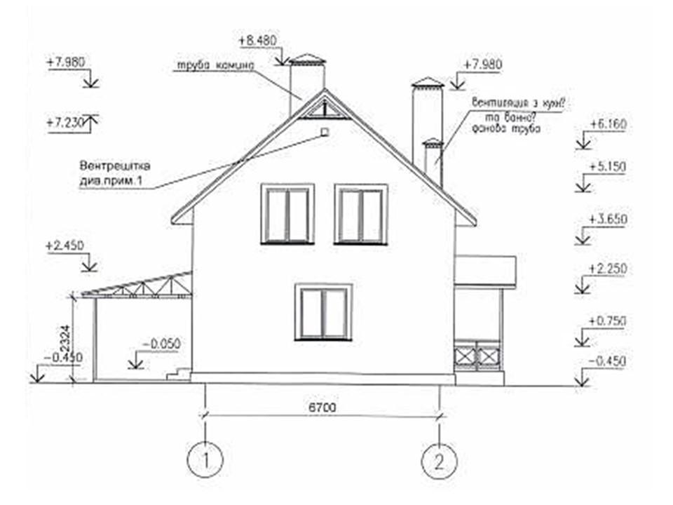 3)Характер даху (пласка або похила). 4)Матеріал покриття даху (черепиця, залізо, шифер і ін.).