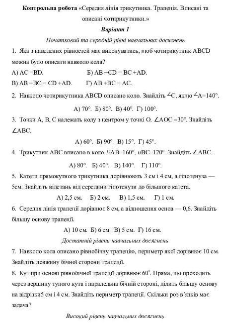 7Пояснення: Біля кола можна описати чотирикутник і тоді, коли суми його протилежних сторони рівні. Трапеція – чотирикутник. => У трапеції ABCD має виконуватися рівність АB+CD=BC+AD. При периметрі трапеції 10 см сума бічних сторін дорівнює половині периметра. АВ+CD=10:2=5 см. За умовою трапеція рівнобедрена, тому AB=CD=5:2=2,5 см