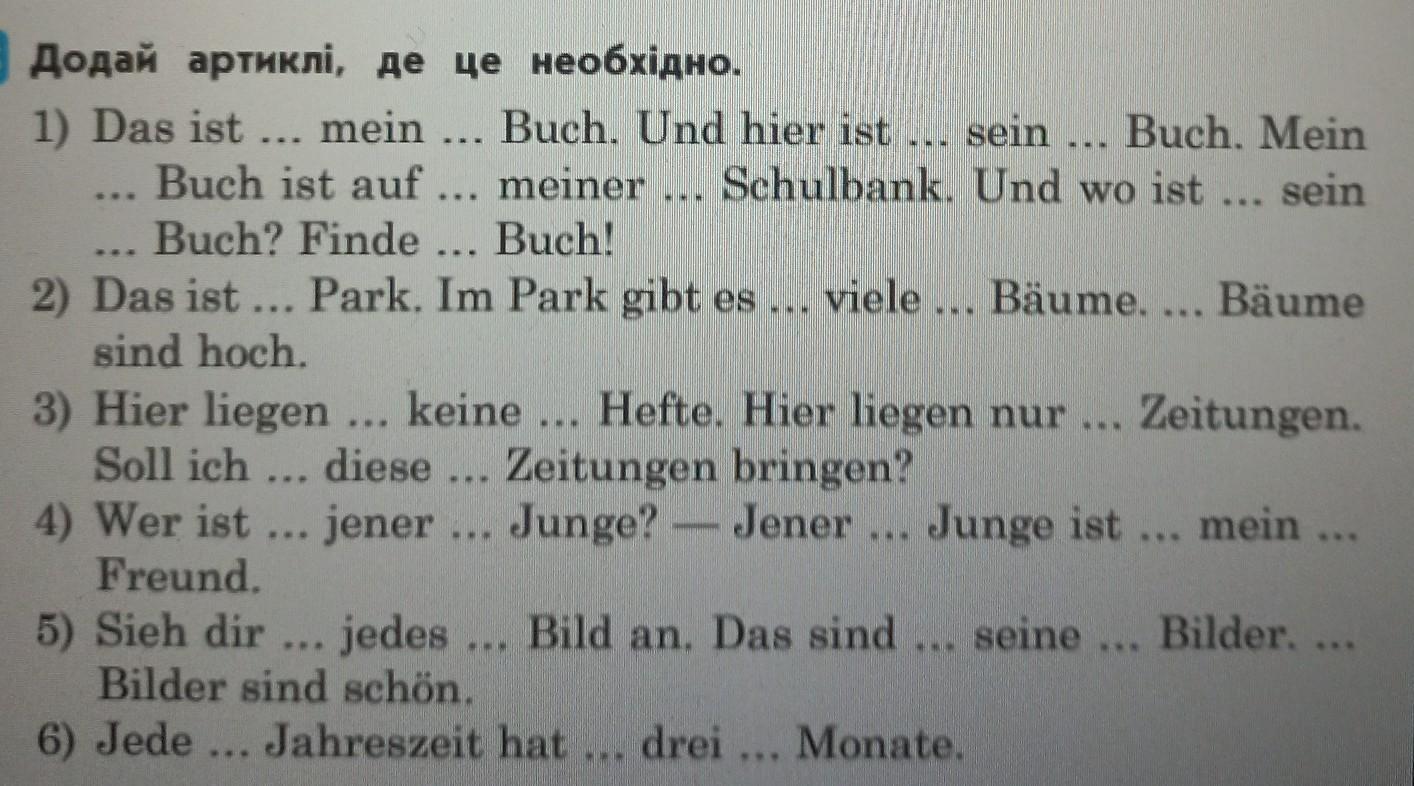 1) Das ist ... mein ... Buch. Und hier ist ... sein ... Buch. Mein Buch ist auf ... meiner ... Schulbank. Und wo ist ... sein Buch? Finde ... Buch!