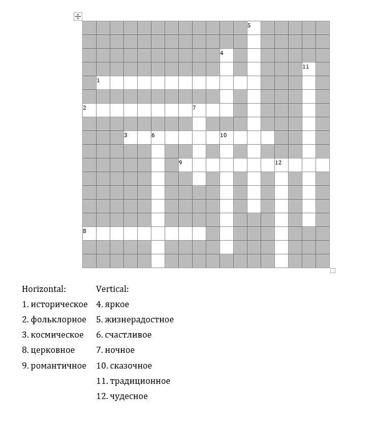 Составленный кроссворд: