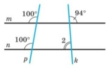 Смотри , если нужно найти 2, то видим то что здесь два угла - 2-? , и угол 94° , так как в общем развернутый угол содержит 180° , то мы понимаем то что от 180 надо отнять 94 , и получим 86° , это - 2 . Как мы поняли что второй угол равен 94 ° ? Очень просто , видим то что линия проходит через два развёрнутого угла , с каждой известной стороны будет один и тот же угол , так как мы видим то это по левой линии благодаря который каждый левый угол равен 100°. Так мы и выяснили это.Каждый угол равен такому-же углу с этой стороны с основанием этой линии.