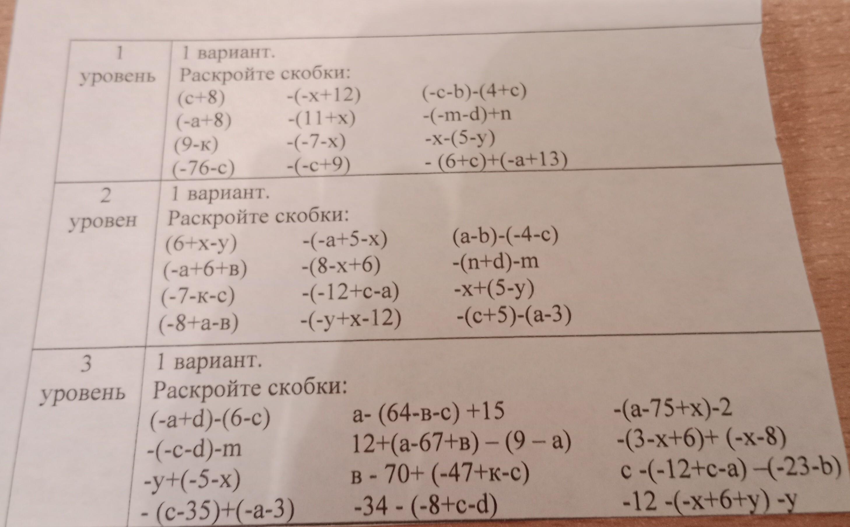 первый столбик открывается также, как написано в скобках. Рекомендую поставить одно число, перед которым знак "+" в начало, но уже без знака "+". Остальные с теми же знаками.