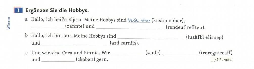 B. Hallo ich heiße Jan meine Hobbys sind Fußball spielen und Rad fahren