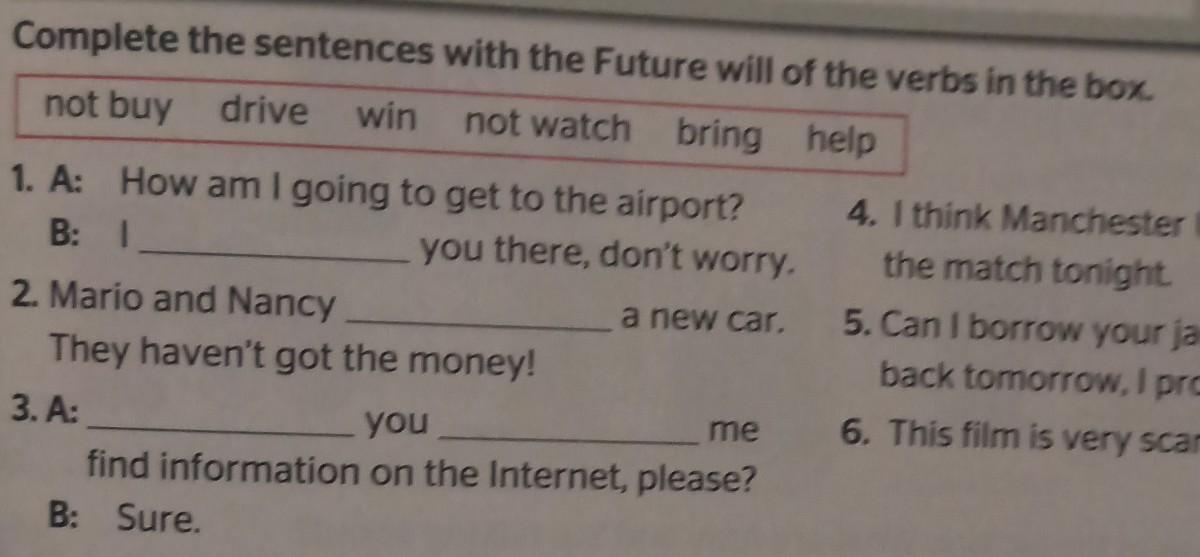 5.Can I borrow your jacket? I _________ it back tomorrow, I promise.