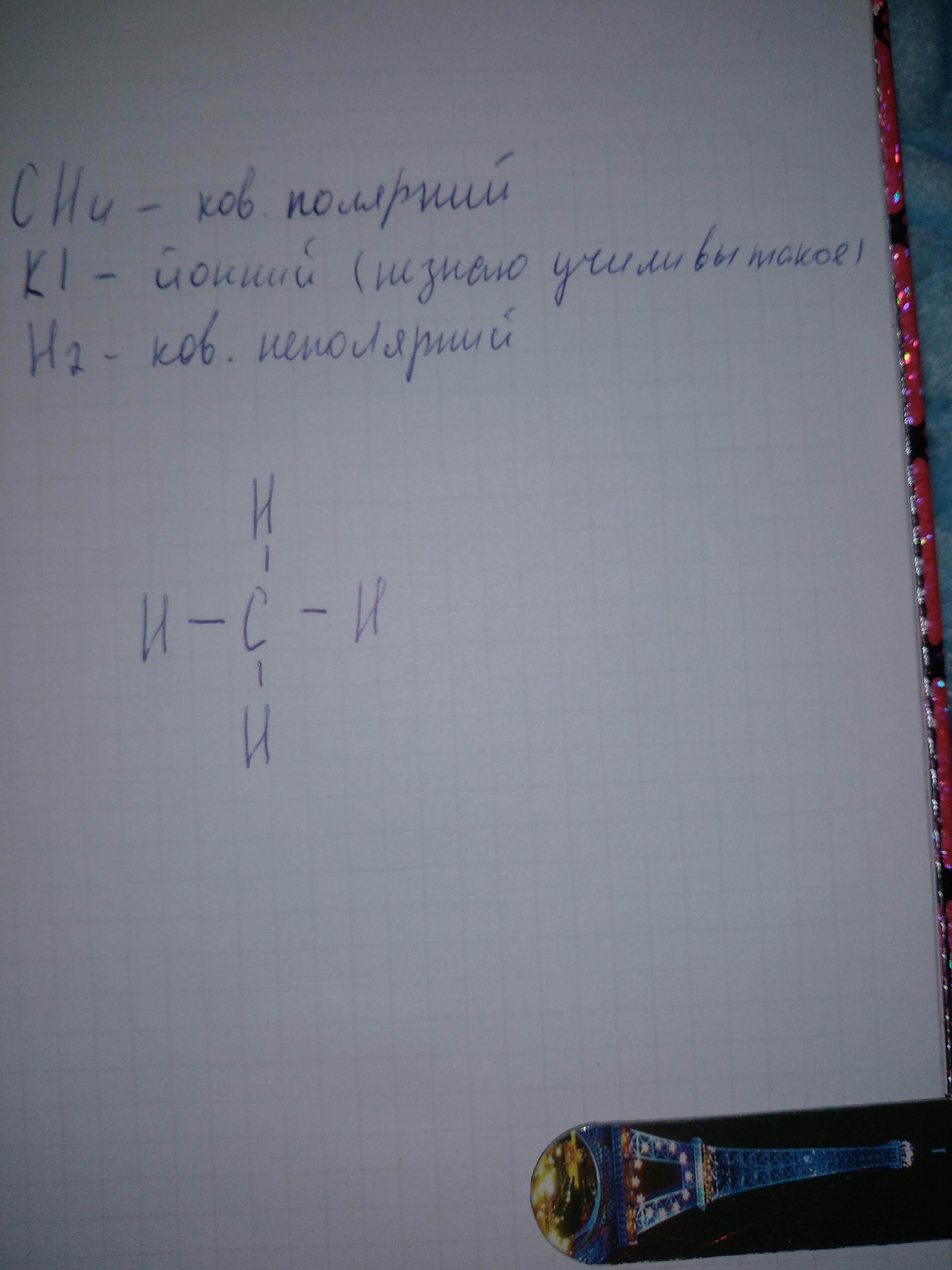 Визначте вид хімічного зв'язку у сполуках, відповідь аргументуйте, для сполуки з ковалентним полярним зв'язком скласти електронну та структурну формулу будови молекули: СН4, КІ, Н2.