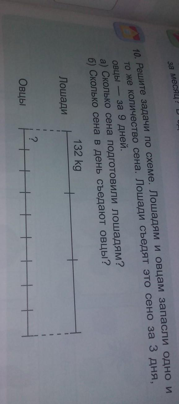 Решите задачи по схеме. Лошадям и овцам запасли одно и то же количество сена. Лошади съедят это сено за 3 дня, ОВЦЫ за 9 дней.